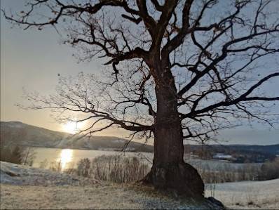 Det er en fantastisk eiketre. Nydelig utsikt av Krøderen også. Nydelig sted.
