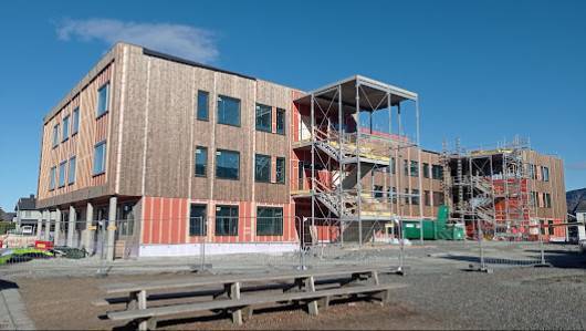 - Inngang for personer i rullestol: Skolen har tilpasset inngang som gjør det enkelt for personer i rullestol å komme inn og ut.