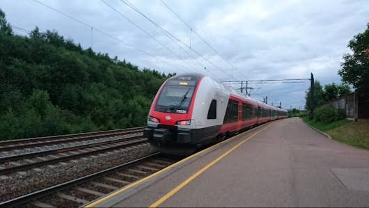 Fin togstasjon hvor man kan gå innendørs i dårlig vær, men ikke etter kl 1700! Hvorfor? Stor flott parkeringsplass som ble oppgradert ifjor, men den er allikevel for liten. Folk fra andre steder kommer og parkerer der når de skal til jobb i byen, dessverre 😕.