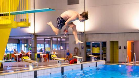 "Svømmehallen adalah flott dengan morsom sklie untuk small dan large children. Hoppebrett and hinderløype."