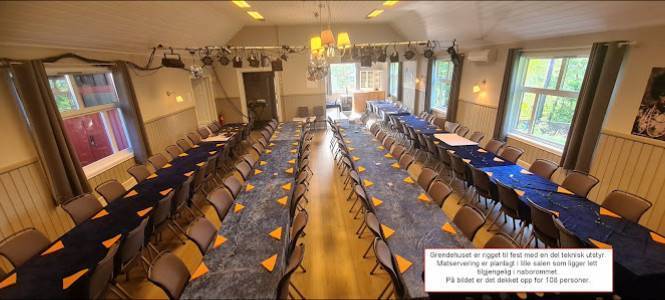 Grendehus som kan leies. Grendehuset er pusset opp og blitt enda finere. God parkeringsplass utenfor. To fine saler med god plass,