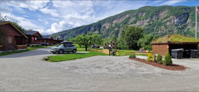 Fin og rolig campingplass. Sykkel og gåavstand til sentrum med butikker, Lustrabadet badeland, og mer. Ikke ved sjøen eller med utsikt, men avskjermet bak hekker med flotte fjell rundt. Vi brukte det som base med campingvognen og dro på dagsturer, og noen dager bare slaraffen på campingplassen.